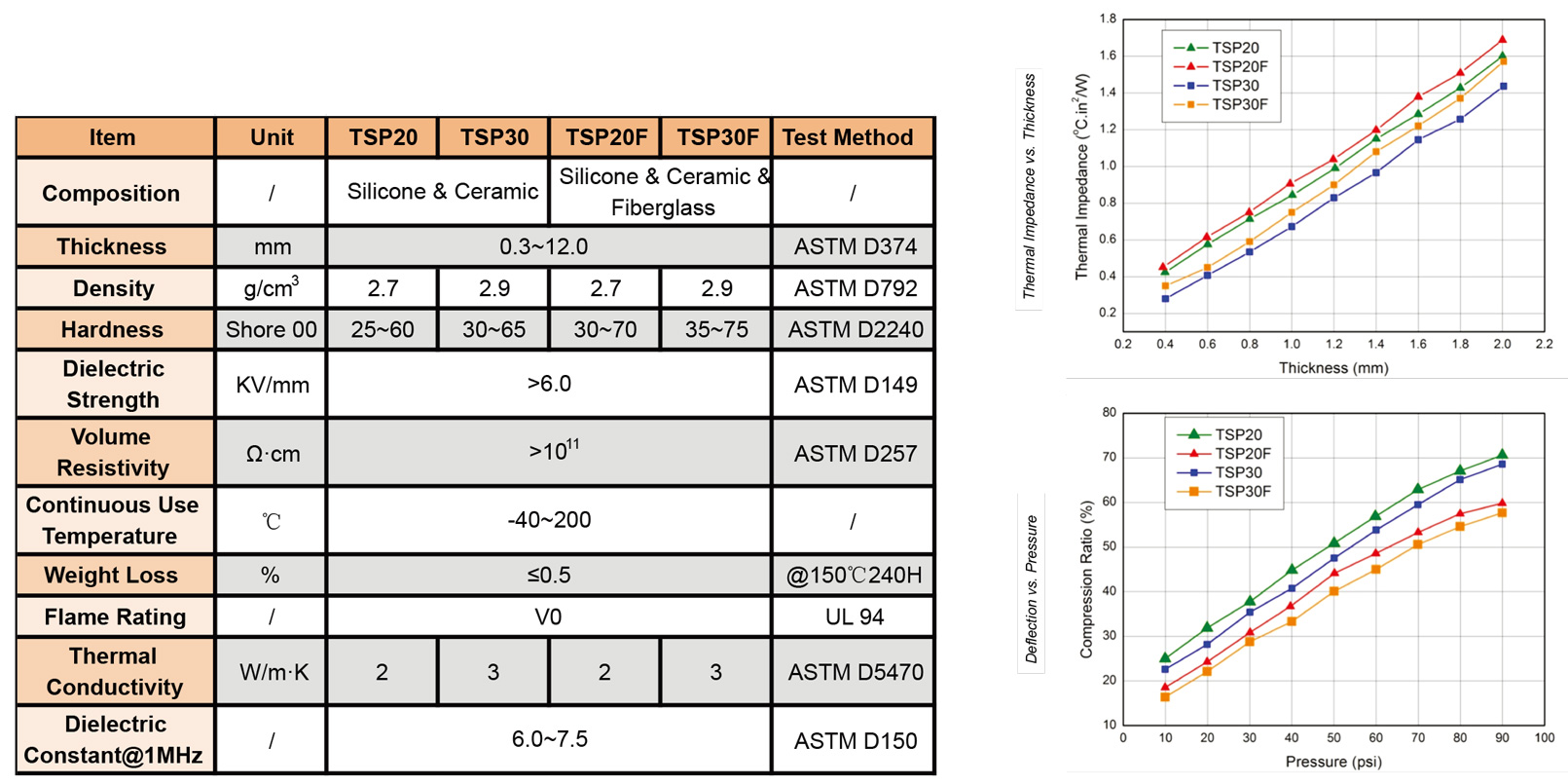 TM TSP系列硅膠導(dǎo)熱墊是一種經(jīng)濟(jì)高效的導(dǎo)熱解決方案,具有低壓縮力、低熱阻、超軟性能和高適應(yīng)性。用于填充電子元件和散熱器之間的空氣間隙。具有高壓縮性、粘性表面、柔軟性和靈活性。在熱導(dǎo)率方面有一系列產(chǎn)品可供選擇,從1.5W/m.k到17W/m.k。" />