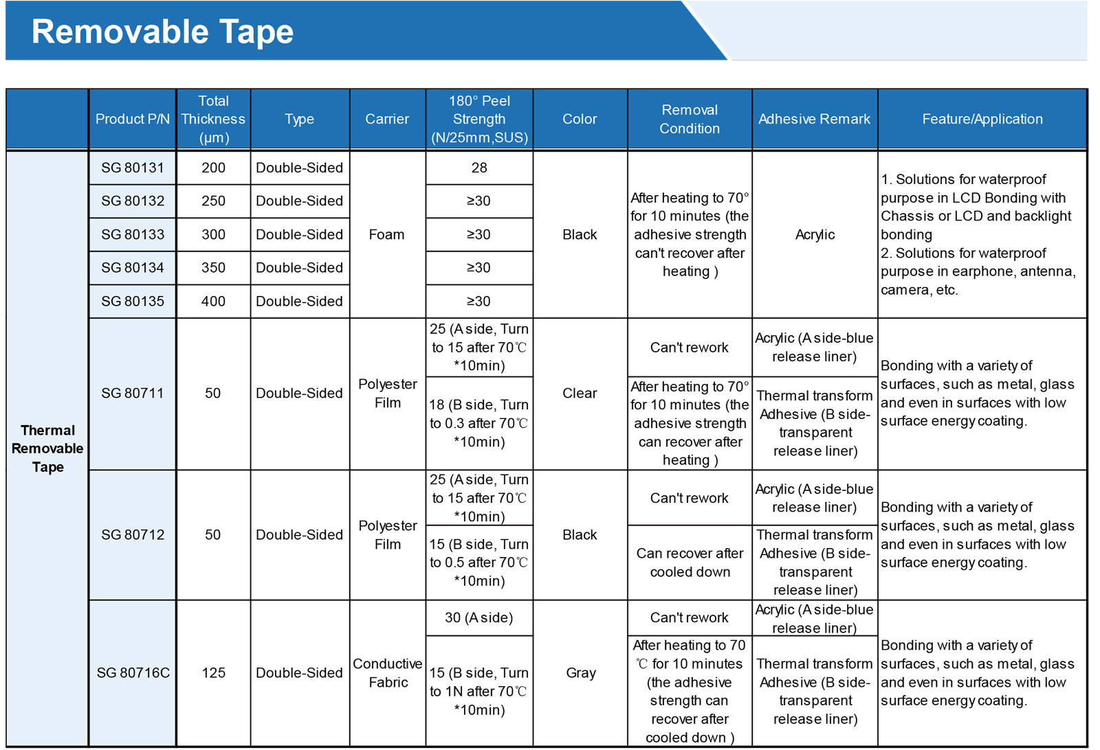首頁 > 產品 > 膠帶材料 > 膠帶 > 熱可拆卸膠帶(可返工)