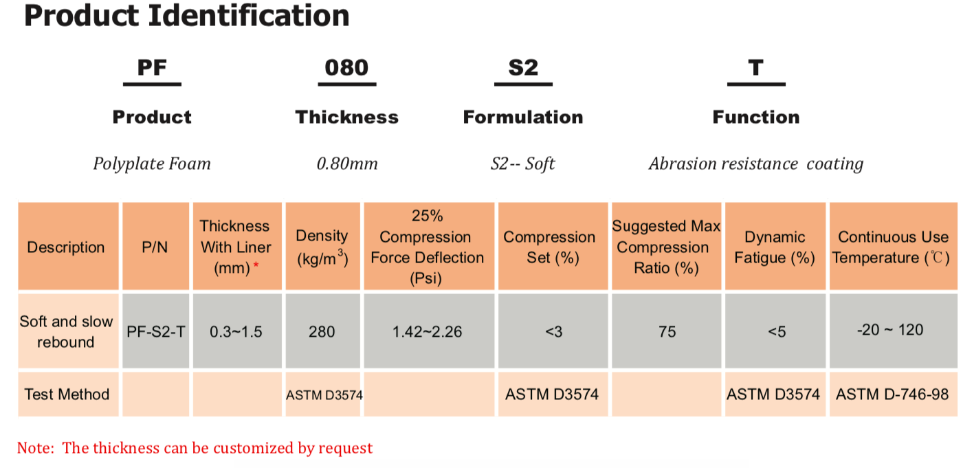 PolyplateTM S2-T系列由黑色聚氨酯泡棉和特殊耐磨涂層組成。是一種柔軟、緩慢回彈的泡棉,用于電子設備應用中的緩沖、保護性密封和長期間隙填充。S2-T系列泡棉具有極低的壓縮永久變形、高密封性能和超強的沖擊吸收性能。